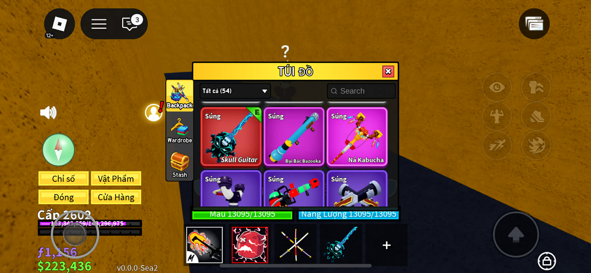 Nhiều skin xịn kiếm súng tộc..